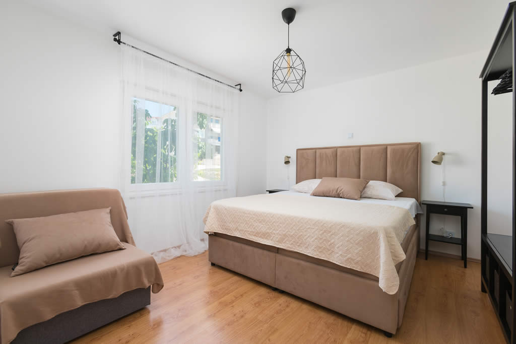 Apartments Regius are newly renovated apartments in a family house situated in a quiet area, only a few minutes distant from the main Copacabana Beach on the Čiovo island. Everything you need is only 100m away: local greengrocer’s, bars, restaurants and most importantly crystal clear blue Adriatic Sea.